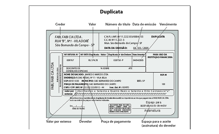 Esse documento se denomina fatura. No ato da emissão da fatura, o vendedor poderá extrair uma duplicata da mesma, para que sirva de título de crédito e possa fazê-lo circular como tal, inclusive por desconto em instituição financeira.